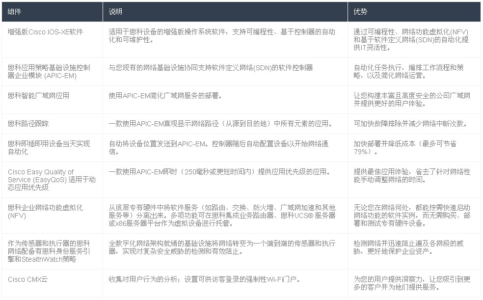 数字化网络架构(简称为DNA)是一种由软件驱动、可扩展的开放式架构,可加速并简化企业网络的运营。利用可编程的架构,您的IT人员可从耗时、重复的网络配置任务中解放出来,进而让他们能够集中精力投入积极改变业务的创新之中。您最终只需单击几下即可灵活开启网络功能,从而能够在您有新创意的时候及时采用新的方式为客户提供服务。同时,这种架构还可以减少成本并降低风险。DNA网络架构可以很好的解决当下企业网络关注的变化多端的问题,同时让变化实现可控的安全保障。